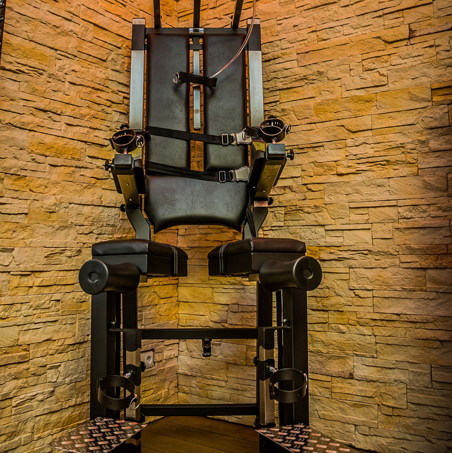 Unser Sklavenstuhl beeindruckt in Form und Funktion! Die zahlreichen Fixierungen garantieren die totale Auslieferung.