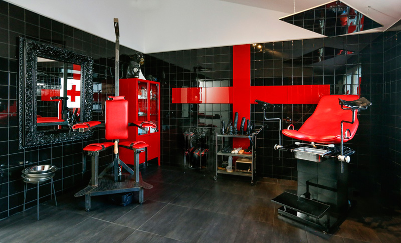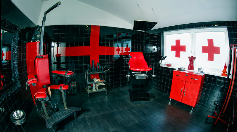 Diese Klinik hat alles zu bieten, was ein Patientenherz begehrt. Angefangen beim Gynäkologischen Stuhl, über einen Fixierungsstuhl für renitente Patienten, bis hin zu Plugs und Gummidildos in allen erdenklichen Größen.