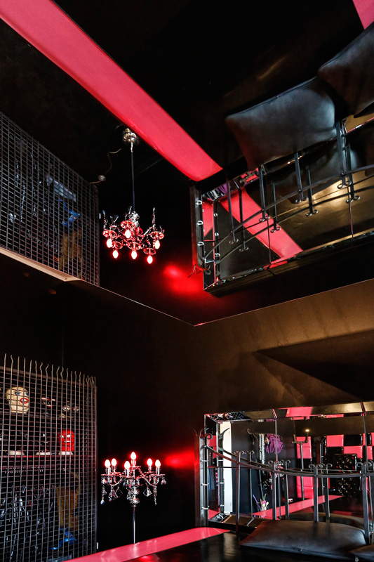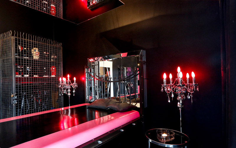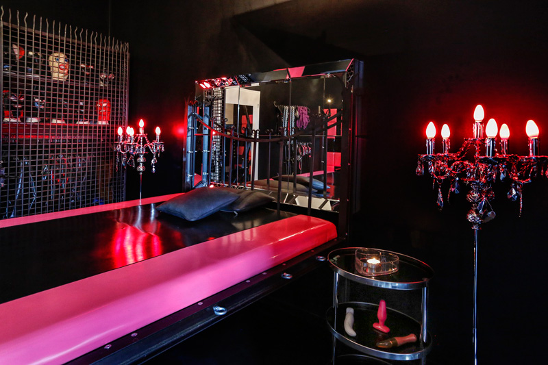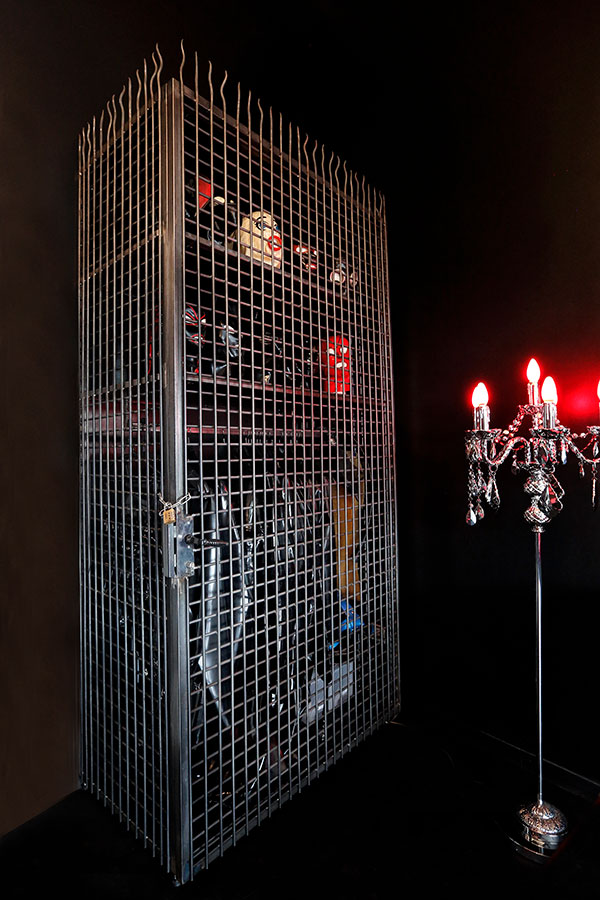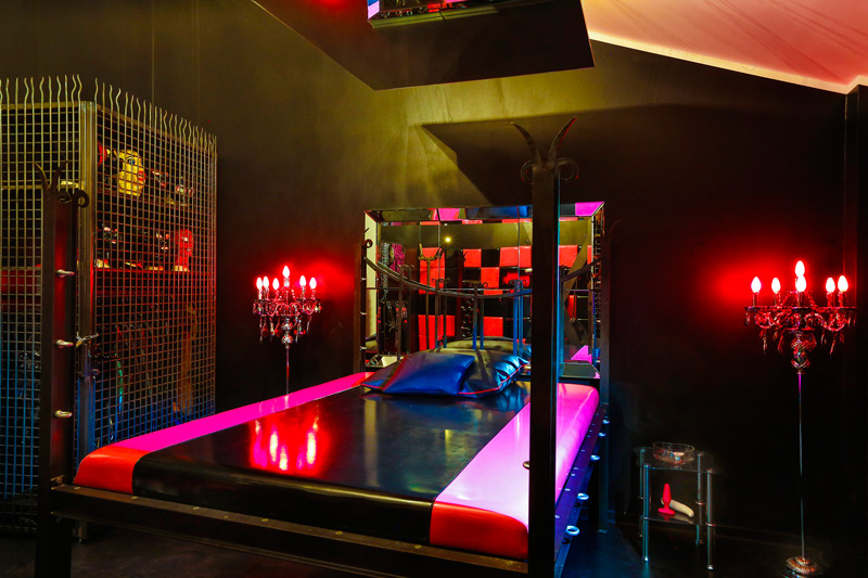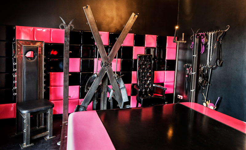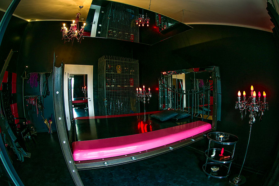 Der Liebhaber fantasievoller Latex- und Gummi Spiele wird hier sein Eldorado der Lust finden. Lack an den Wänden, ein mit Lack überzogenes Fesselbett, Andreaskreuz, Fesselthron, Gummiequipment, Latex Masken, und jede Menge Toys. All das eröffnet eine wunderbare Welt der Fetisch-Fantasien, die hier nun Wirklichkeit werden.