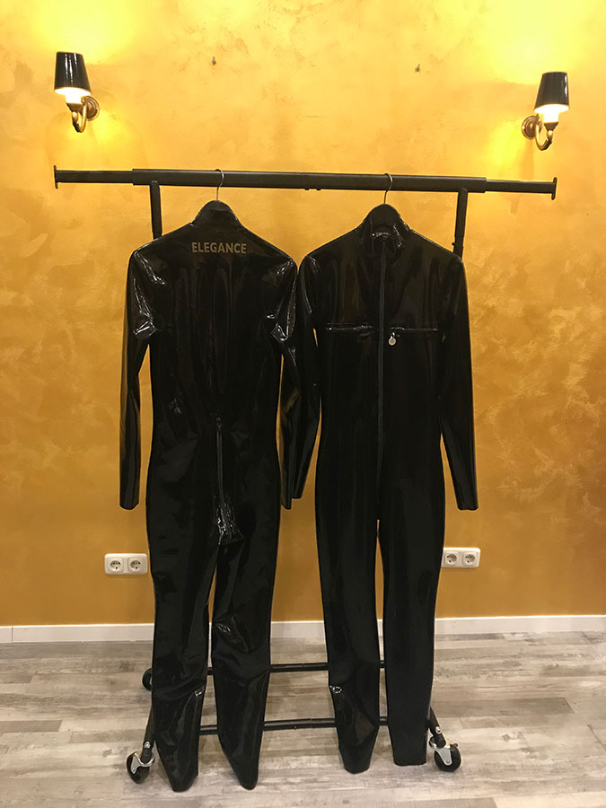 Unsere Latexausstattung wird jederzeit professional gereinigt, desinfiziert, gepudert und poliert. Unsere hochwertige Latex-Ausstattung von DeMask und Black Style ist auf dem allerneusten Stand.
