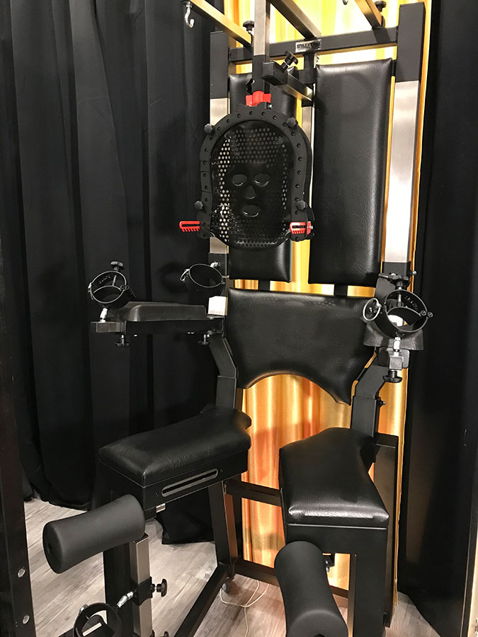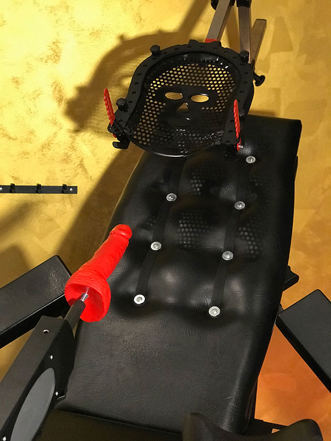 Intensiviert Eure Behandlung am Gynstuhl durch das Hinzufügen der Kopffixierungsmaske Warrior und Fick-Maschine