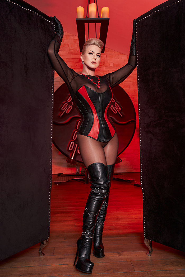 Meine Leidenschaft für BDSM und die Teilnahme an zahlreichen Seminaren bei einigen der besten Dominas in Deutschland haben mich zu einer Domina mit Professionalität, Charme und Hingabe geformt. Ich beherrsche die Kunst der Dominanz und weiß, wie wichtig Vertrauen und Kommunikation in unseren Begegnungen sind.
